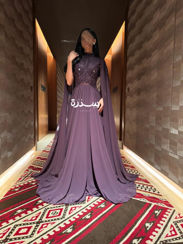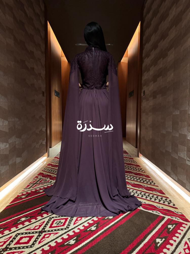 فستان بلون بنفسجي ملكي غني، يوحي بالفخامة والرقي.
