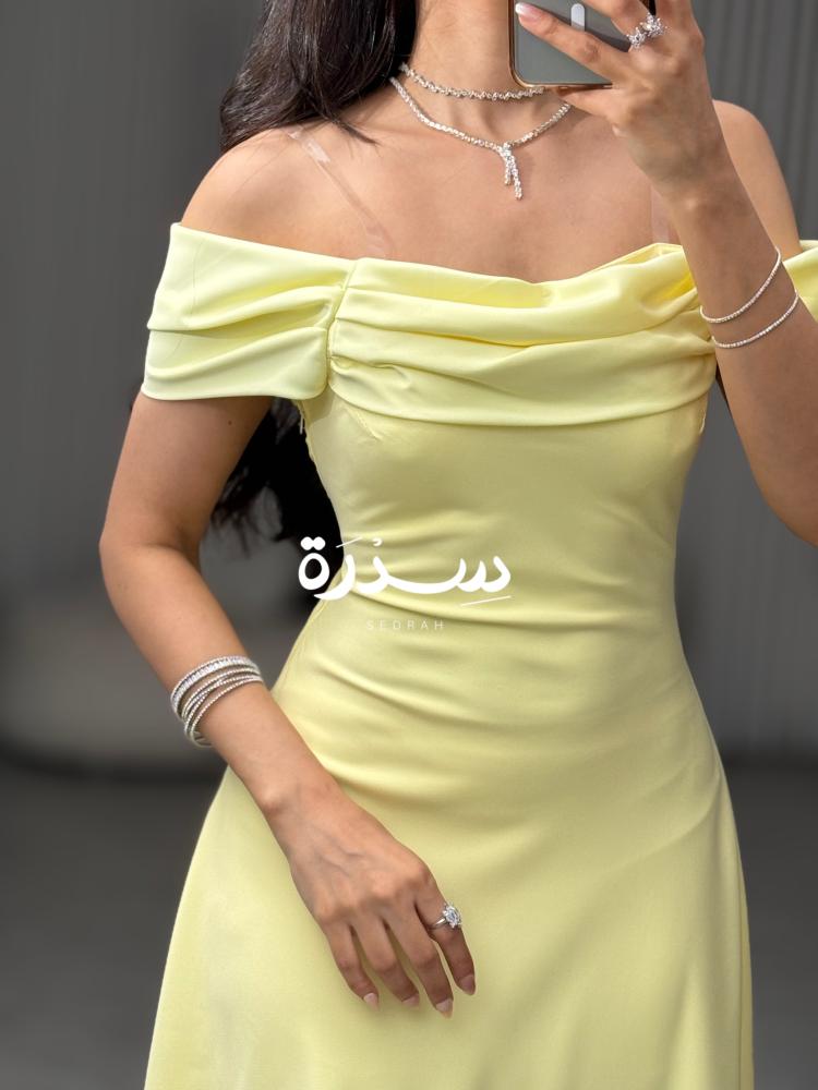 فستان ناعم اصفر أوف شولدر