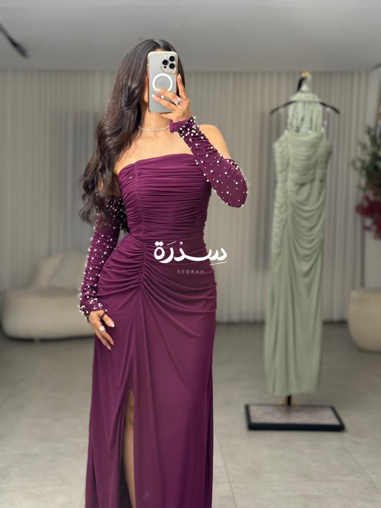 فستان سترتش بأكمام فصوص