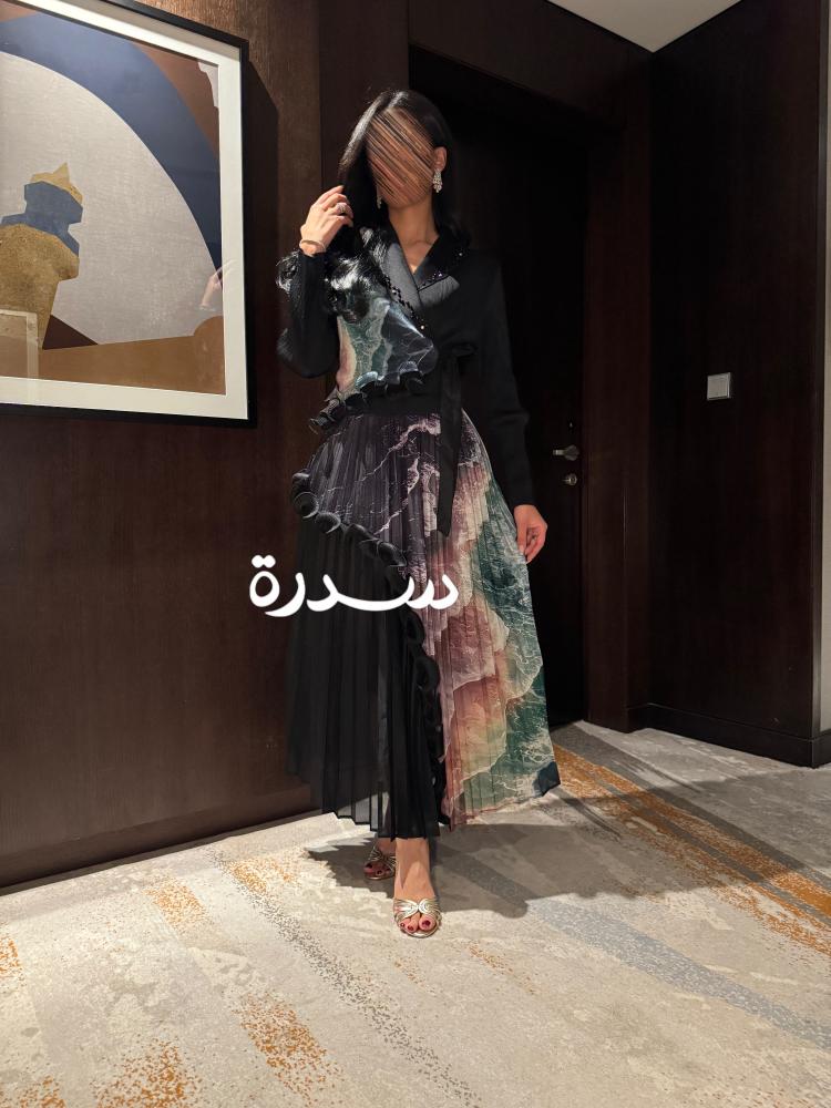 فستان سهرة ميدي بنقشة
