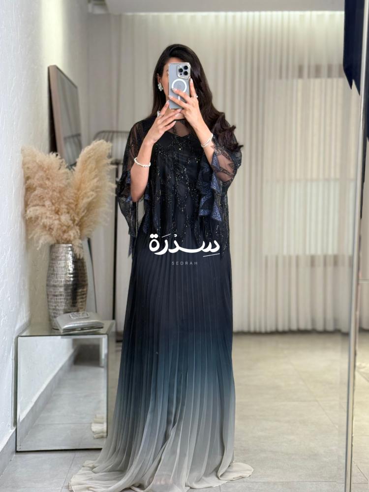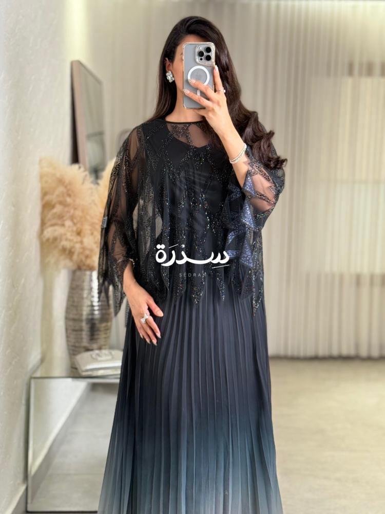 فستان سهرة شيفون بتطريز مميز عالصدر